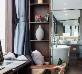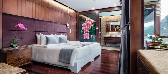Orchid Cruise Lan Ha Bay is renowned for its top-tier facilities, blending modern elegance with advanced amenities, including a luxurious spa and jacuzzi to elevate your onboard experience. Each cabin is thoughtfully designed with a private bathtub facing breathtaking bay views and a personal balcony, creating a seamless connection to nature right from your room.