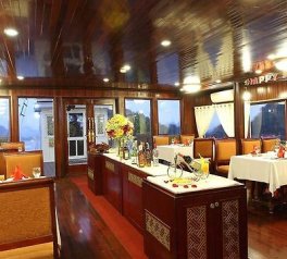 Quý khách thưởng thức hải sản Việt Nam hoặc đồ ăn chay, trong khi du ngoạn trên Vịnh Hạ Long - Lan Hạ tráng lệ, chiêm ngưỡng những khối đá kỳ thú trong vịnh.