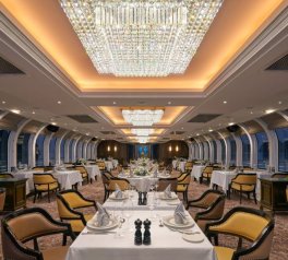 Quý khách lên Du thuyền Paradise Delight - du thuyền nhà hàng lớn nhất Vịnh Hạ Long với hai nhà hàng cao cấp phục vụ các món đặc sản quốc tế.